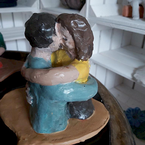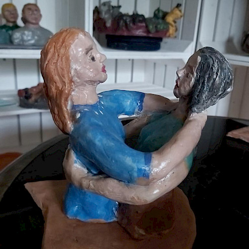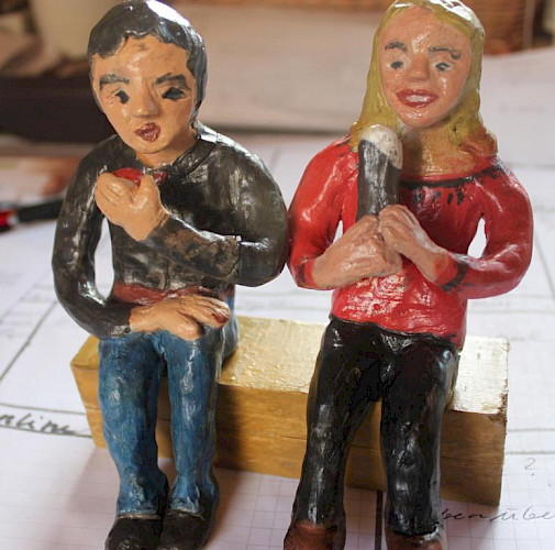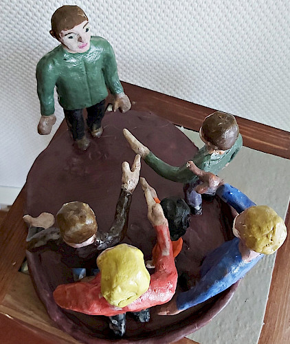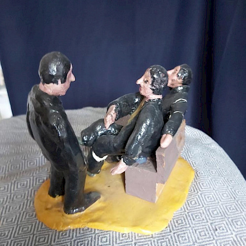 Aber meist sind Menschen nicht allein und isoliert. Menschen befinden sich immer im sozialen Kontext. Meine Skulpturen zeigen sie in ihren Beziehungen zueinander. Wie kommunizieren sie? Wie drücken ihre Körper aus, wie sie zueinanderstehen? Wie reagieren Menschen in Konflikten? Und wie zeigt sich z.B. gesellschaftliche Ausgrenzung?